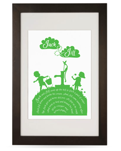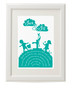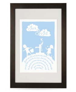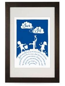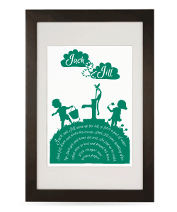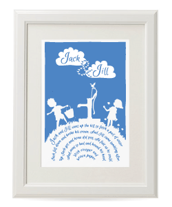 The unique design features the text of the children's nursery rhyme "Jack & Jill" within a negative silhouette inspired by the tale.