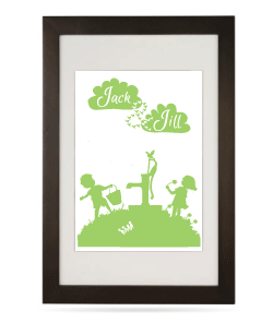 The unique design features the text of the children's nursery rhyme "Jack & Jill" within a positive silhouette inspired by the tale.